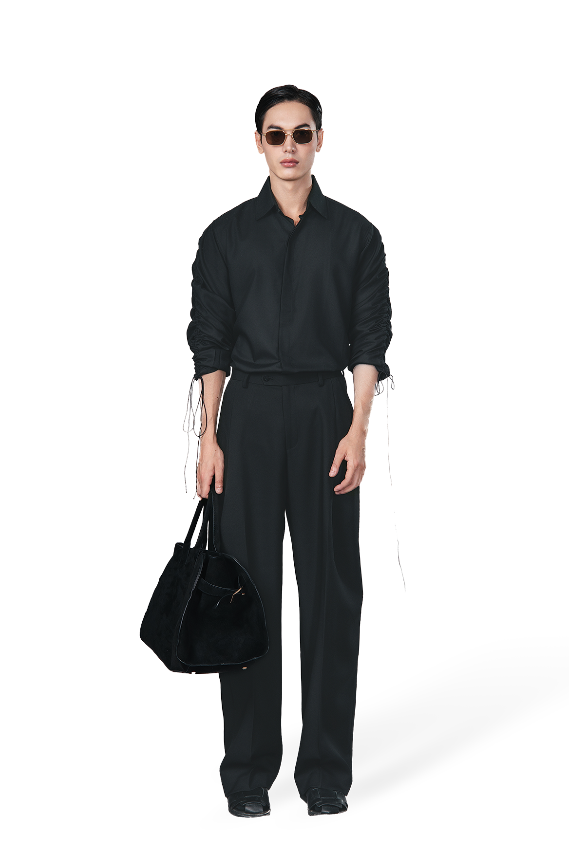 Áo sơ mi tay dài phối dây rút hai bên tay