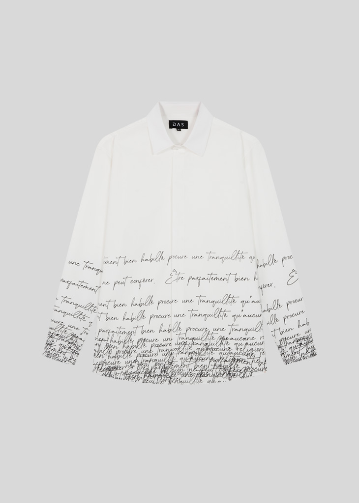 Áo sơ mi tay dài phối chữ dầy từ tà áo thưa dần lên