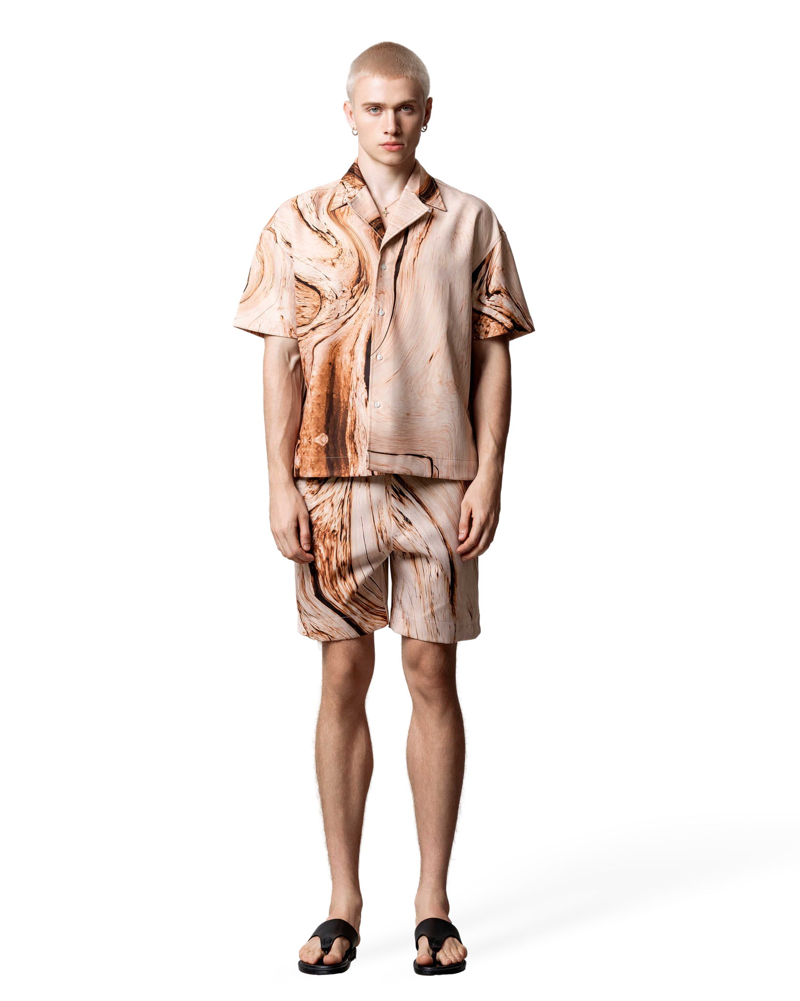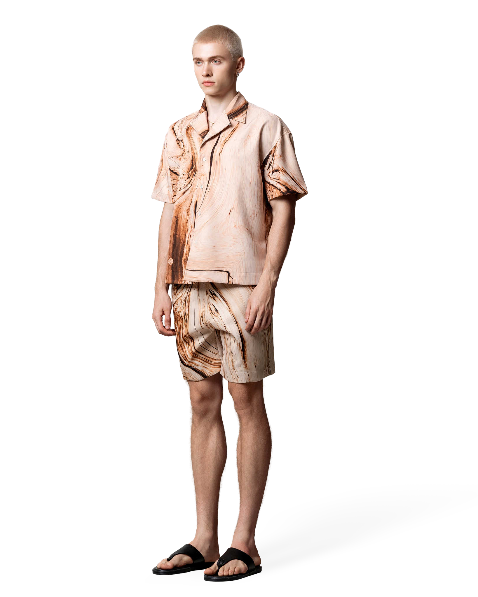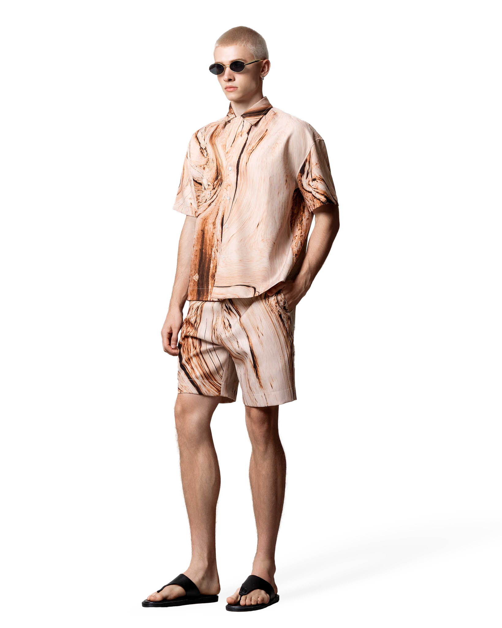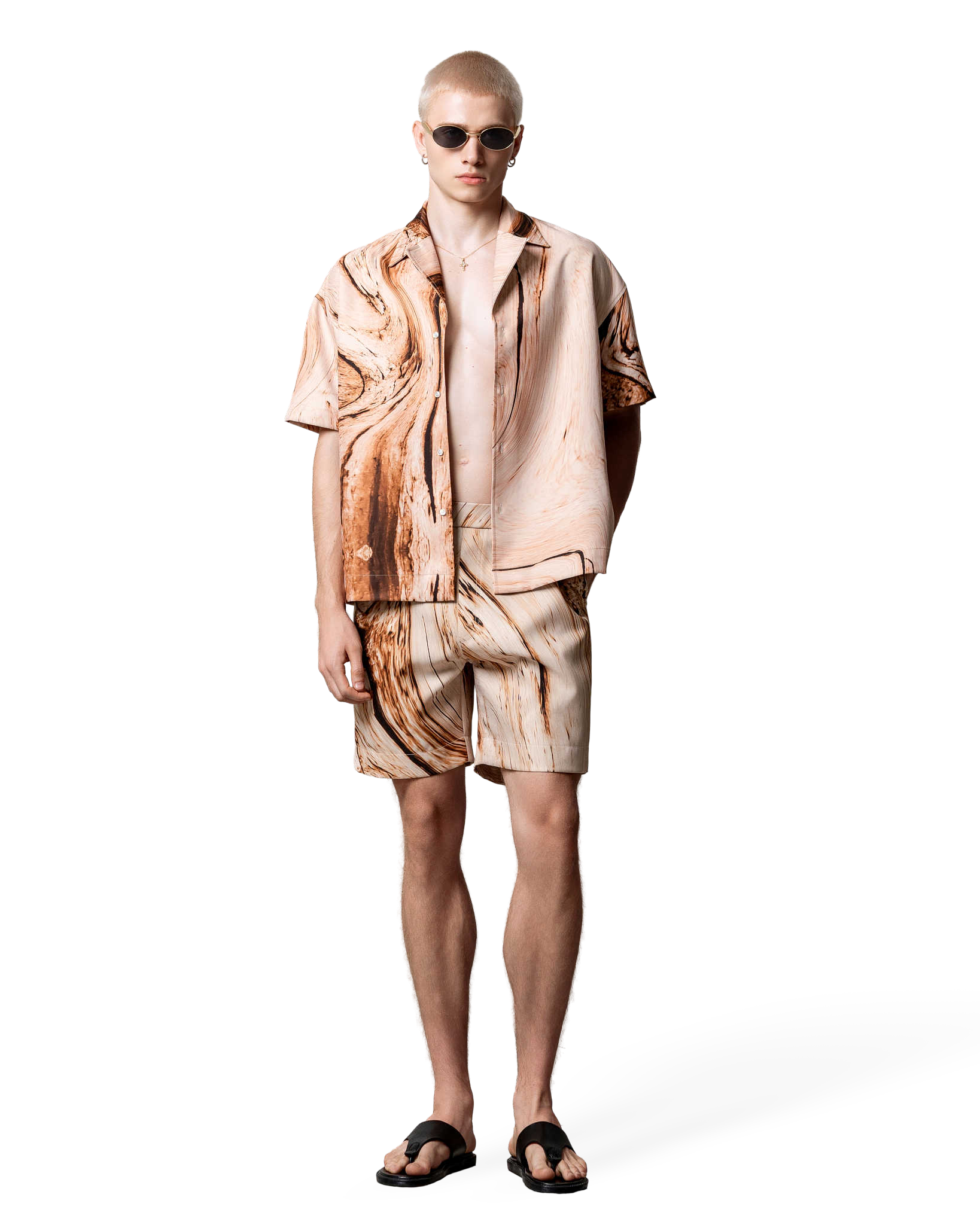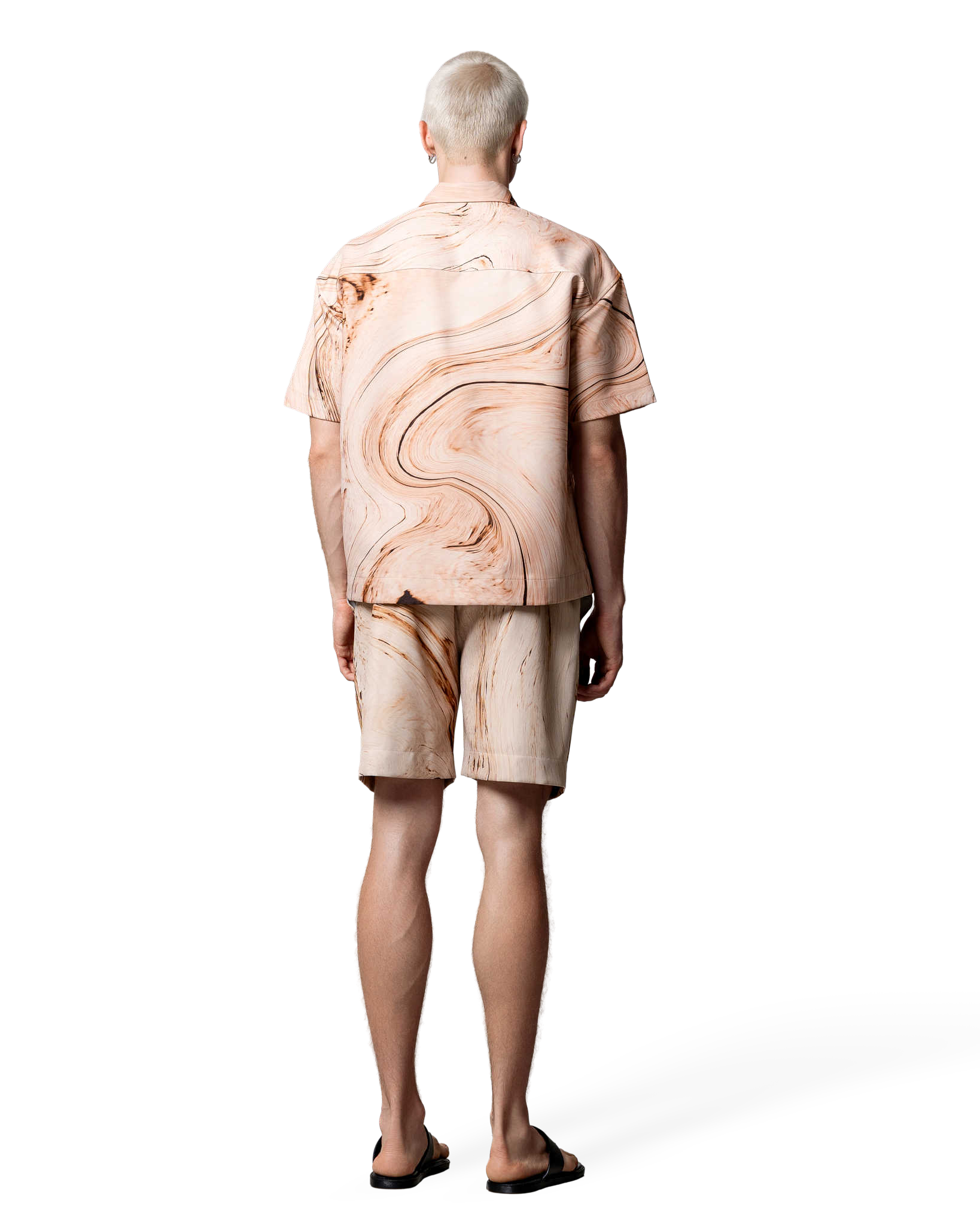 Áo sơmi cổ cuban hoạ tiết in marble.