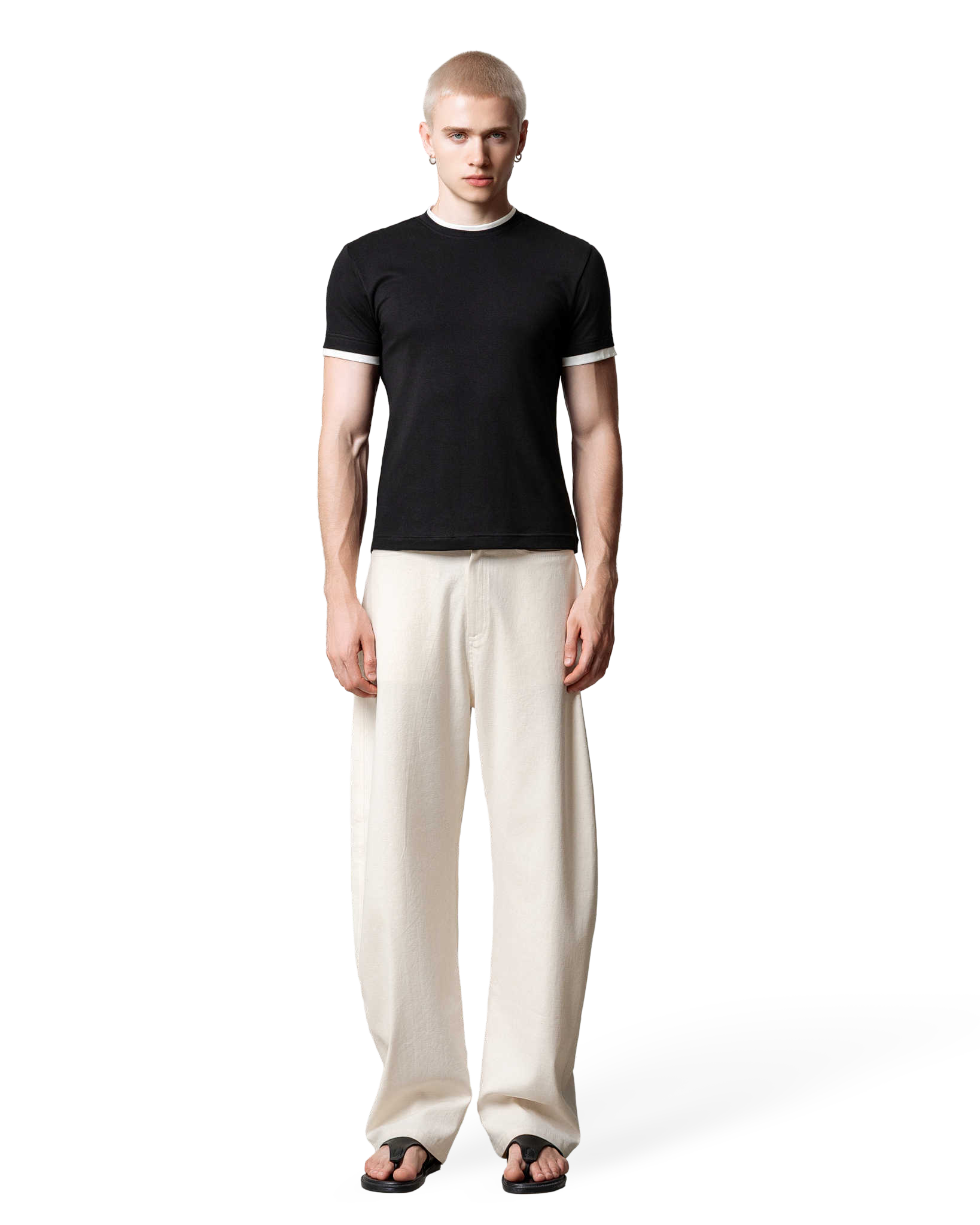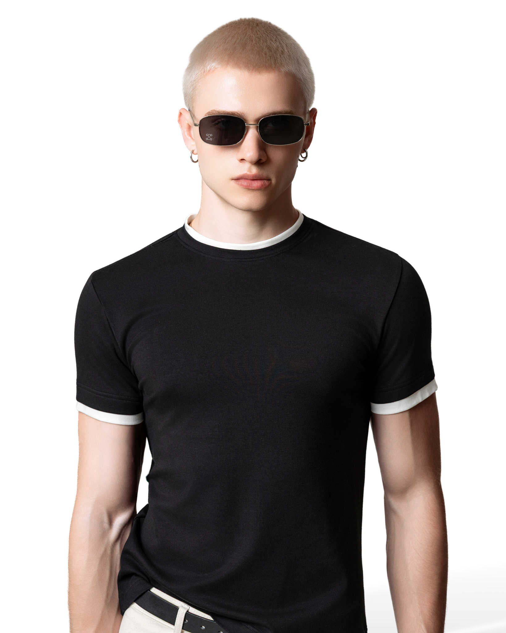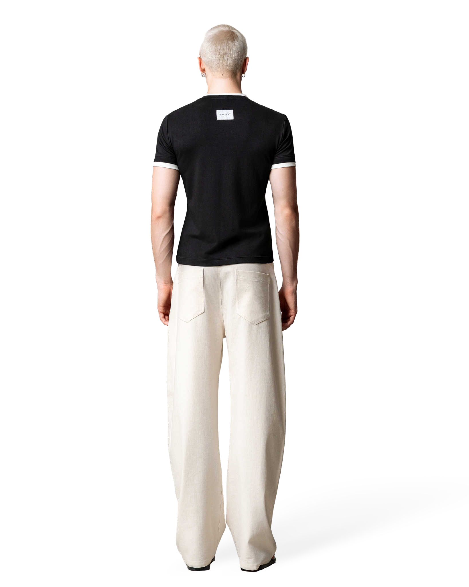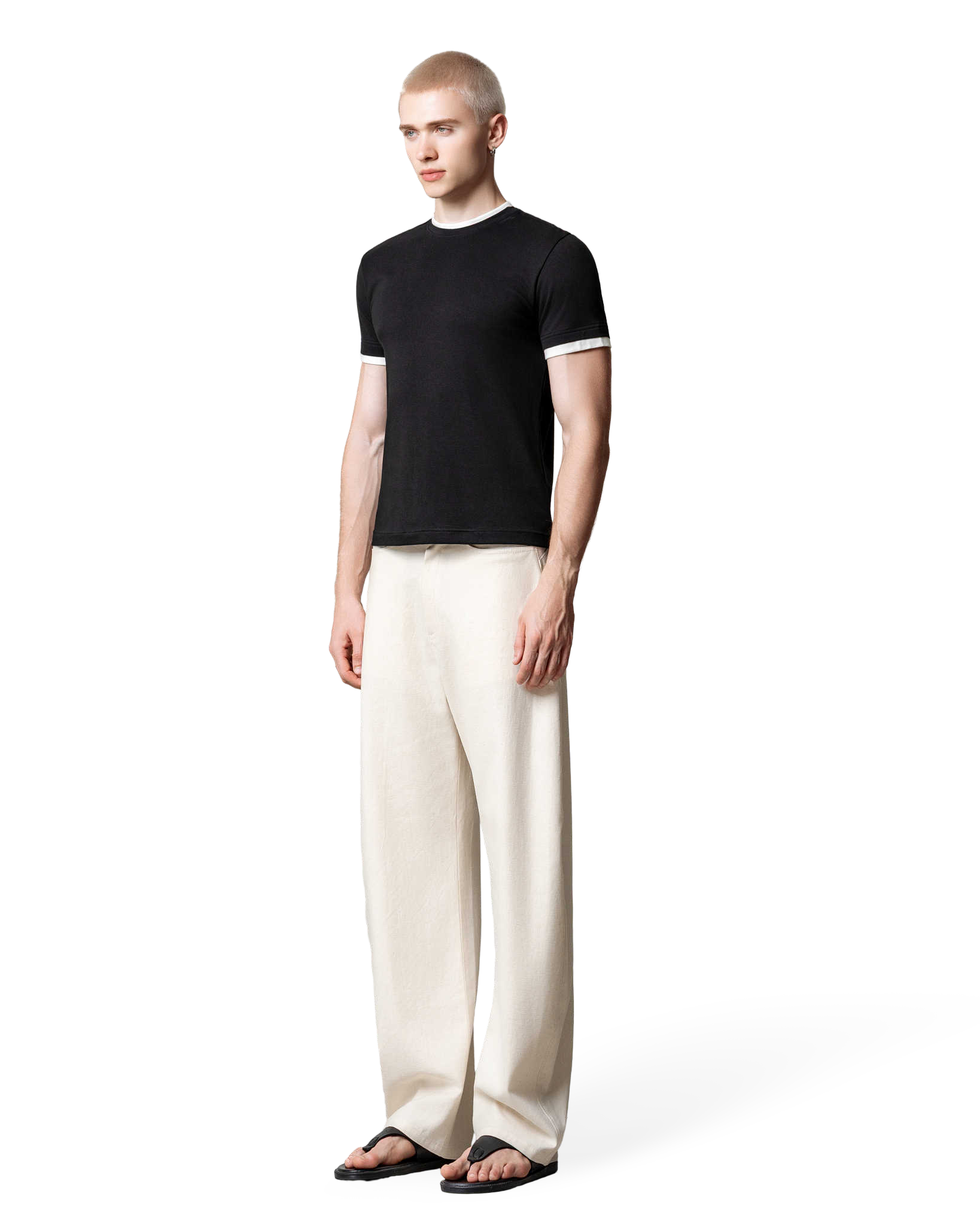 Áo thun phối viền cổ và cửa tay màu trắng.