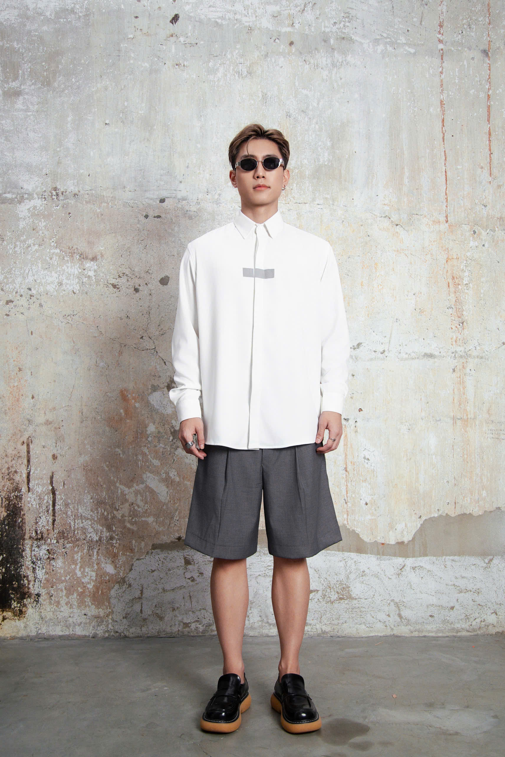 Áo sơ mi tay dài phối ô vải phản quang trước ngực