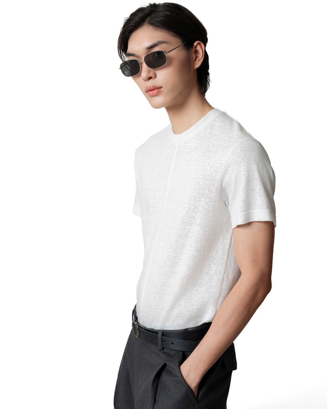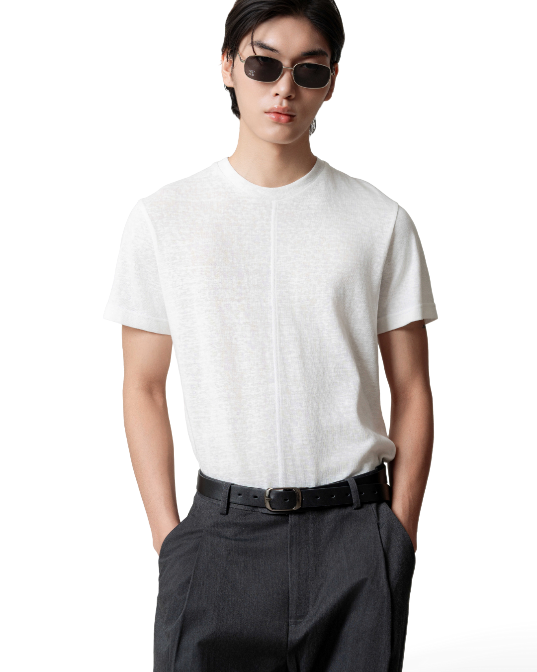 Áo thun cổ tròn màu trắng kem