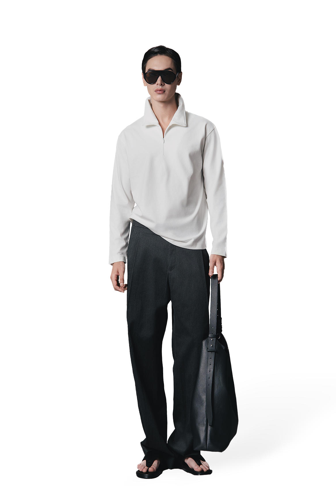 Áo thun tay dài phối cổ có khoá zip