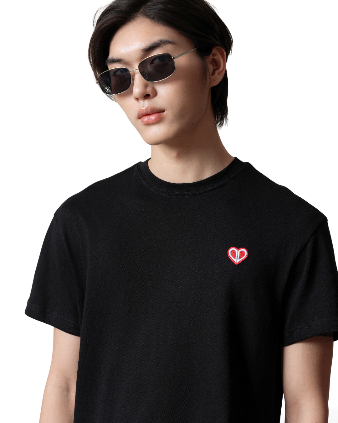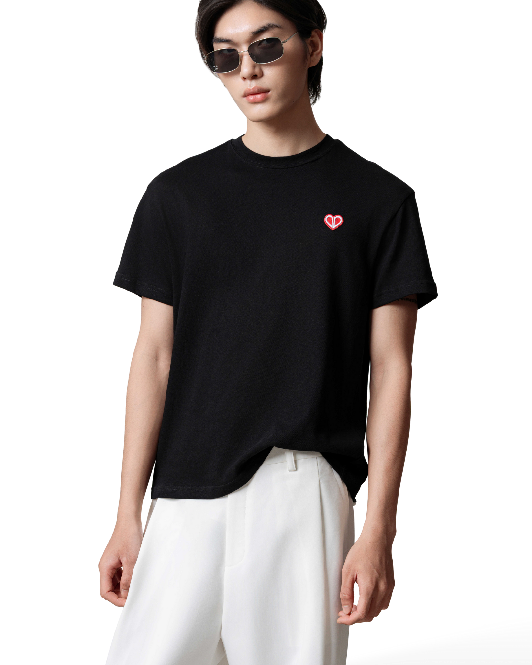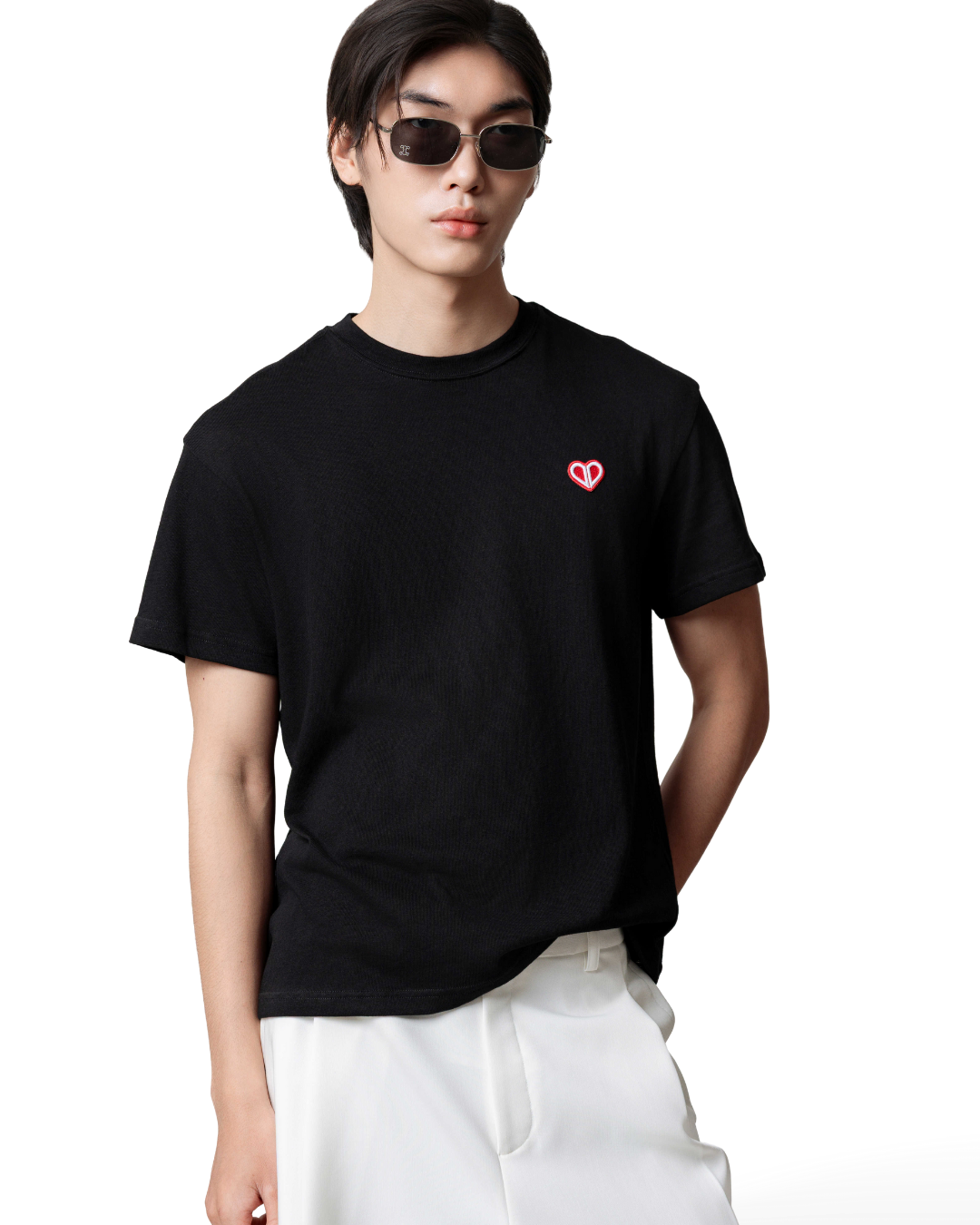 Áo thun form regular fit có họa tiết trái tim thêu nổi trước ngực.