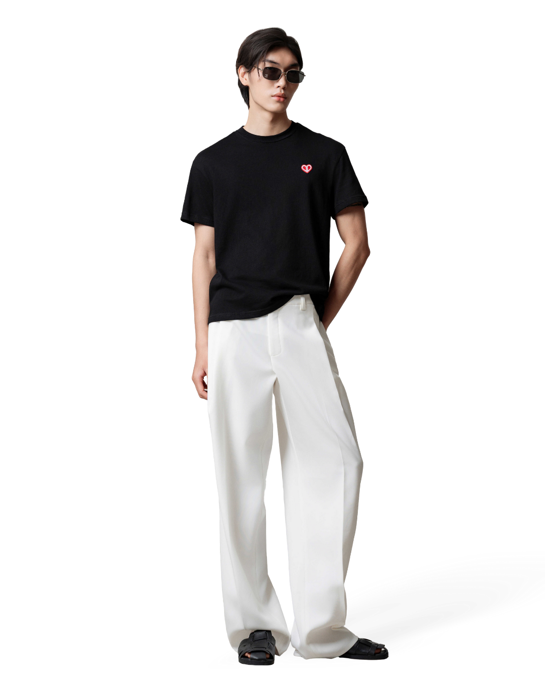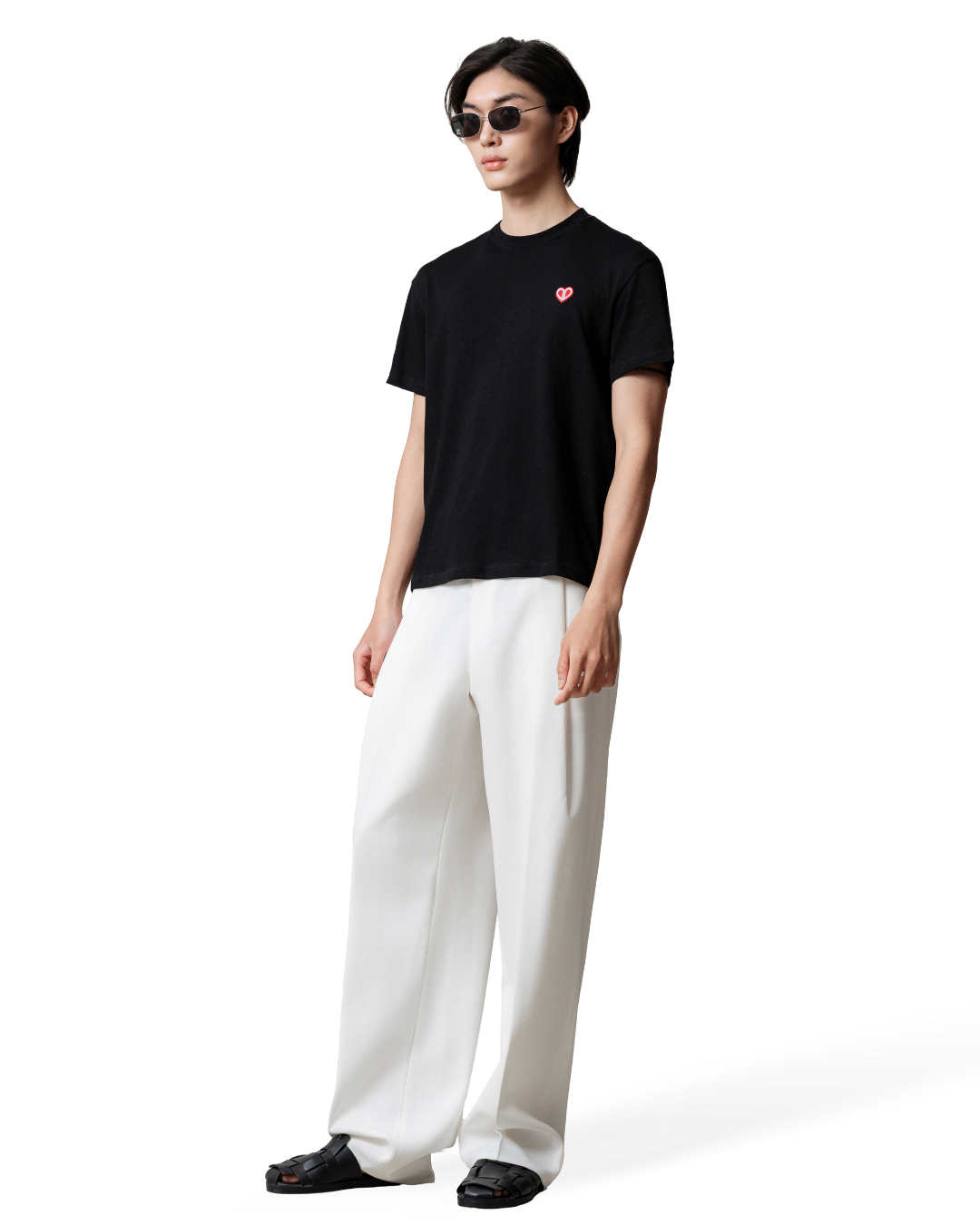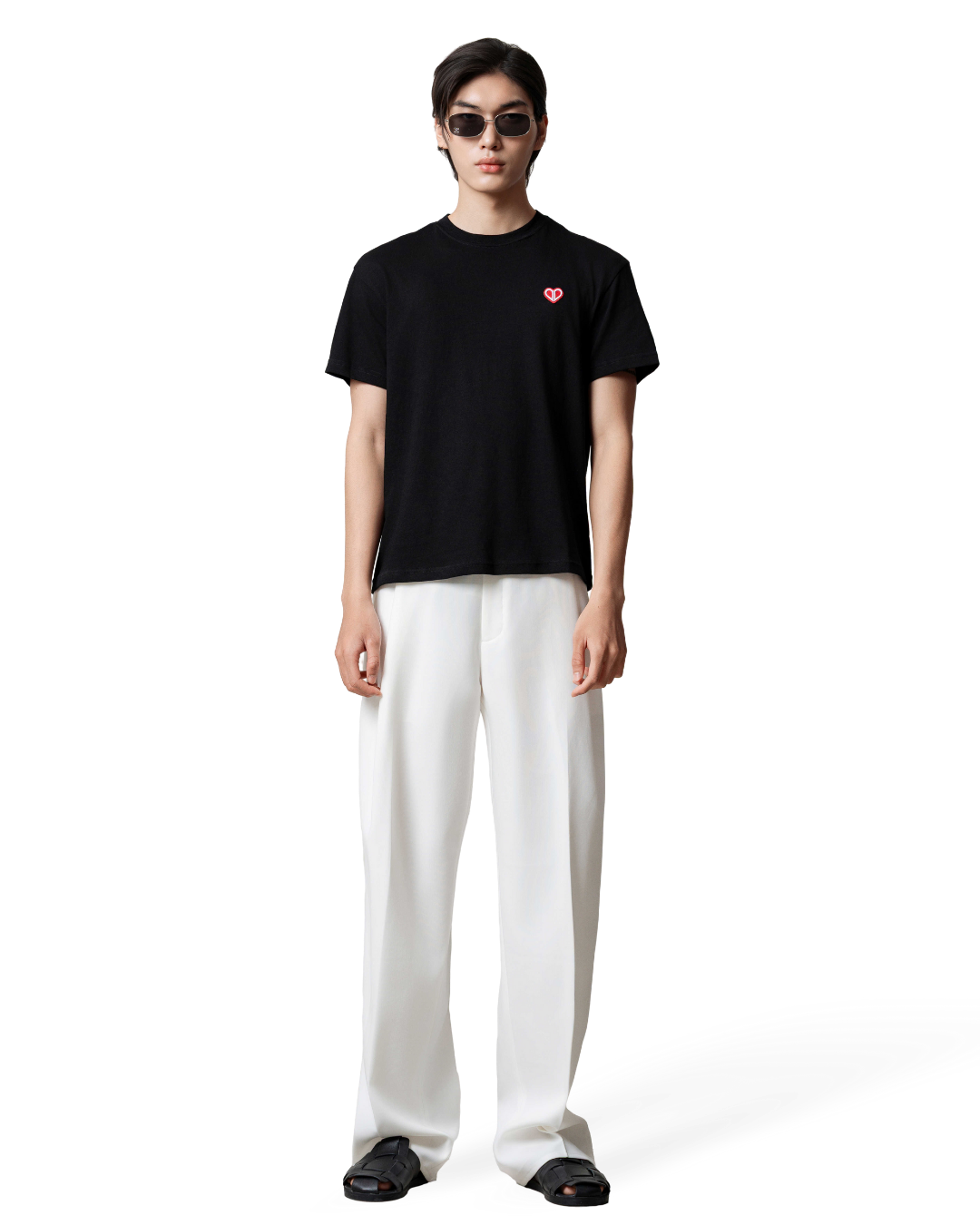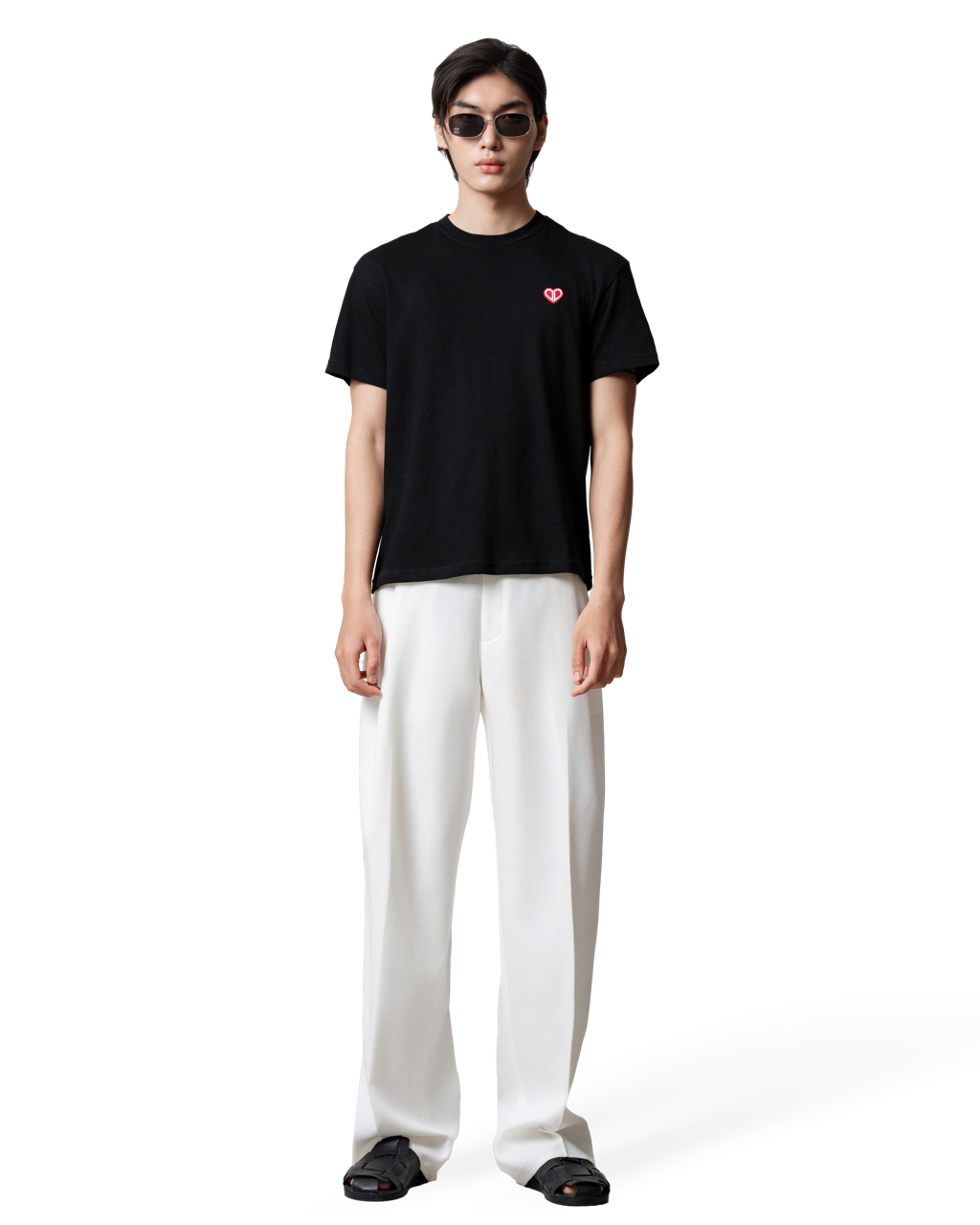 Áo thun form regular fit có họa tiết trái tim thêu nổi trước ngực.